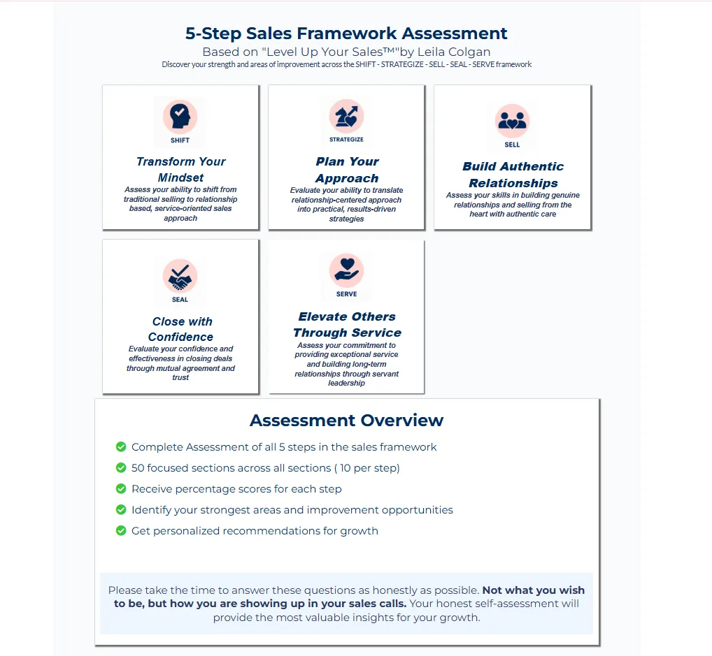 Whether you’re rebuilding confidence or ready to level up, this tool helps you identify your strengths, strengthen your gaps, and align your sales habits with your purpose.